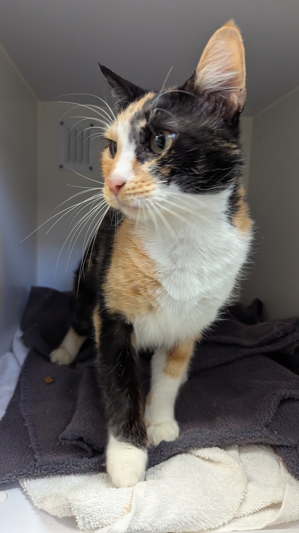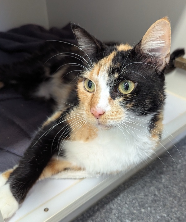 Introducing Chimera, the sweet little heart who started off a bit nervous but quickly realized how much she adores affection! This shy girl may need a little time to settle in, but once she does, she'll melt your heart with her loving, gentle nature. A quiet launch room, and lots of places to hide, will help her feel safe while she adjusts to her new home. Chimera would do best in a home with older kids who can respect her space and let her come out of her shell at her own pace. She came in with another cat, so she may be open to having a feline friend, with slow introductions. With a little patience and plenty of love, Chimera is ready to be your sweet, forever companion! Give this girl a chance and apply to adopt today!
