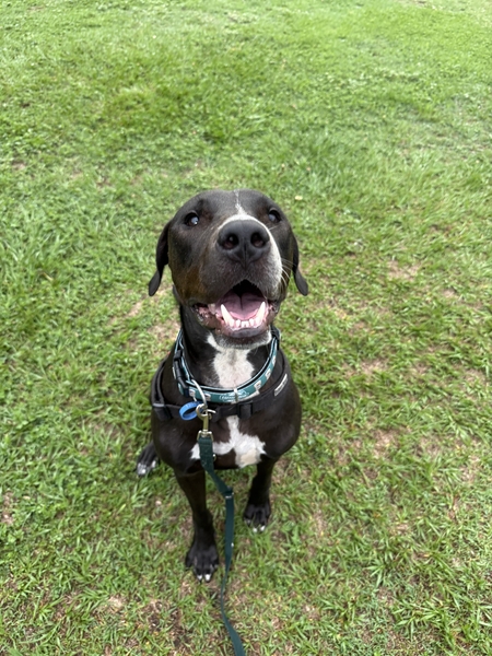 He's a smart pup who already knows "sit" and is very food-motivated, which makes training fun! However, he's still working on his manners and impulse control-he can get a little overexcited and snatchy with treats. Enrichment activities and puzzle feeders will be great tools to keep his mind busy and help him learn polite behaviors.
