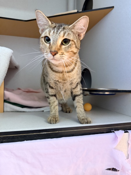 Meet Spice. She came into our care as a stray with her newborn kitten, very frightened and overwhelmed, understandably. Nonetheless, in a remarkably short time, Spice settled down and she developed a great relationship with the volunteer staff here at RSPCA, soliciting attention and enjoying the affection they have given her. Her three favourite things are food, gentle attention and the companionship of her human friends. What a great combination for an ideal pet.