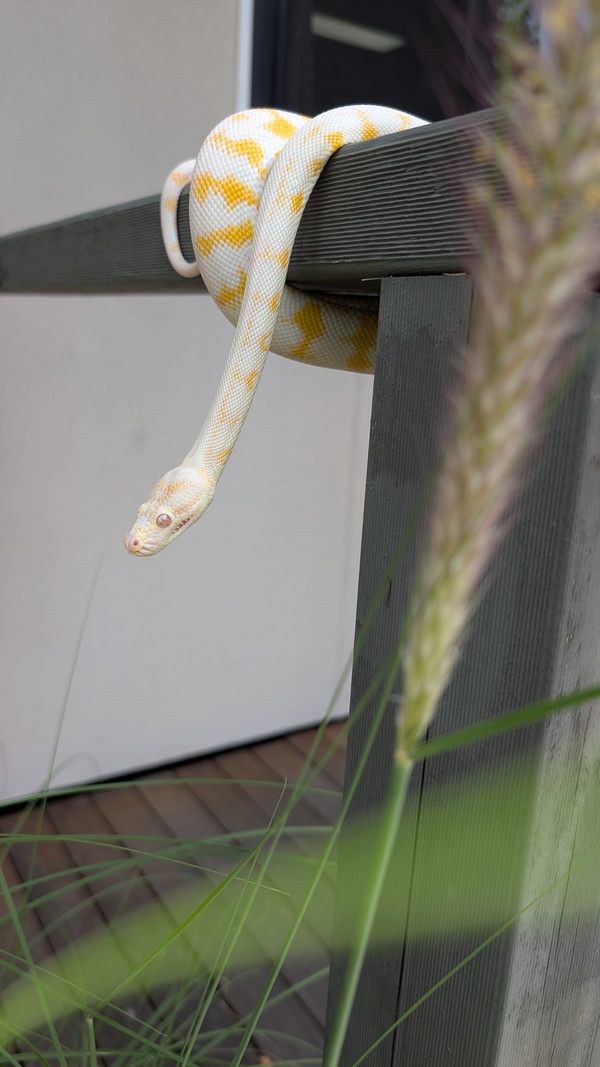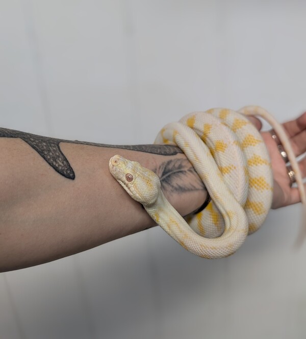 Hi, my name is Durian, and I am a very handsome Darwin Carpet Python! My species is found in the Kimberley region of northern Australia right through to Western Queensland. Seeing an albino in the wild is a very rare occurrence!