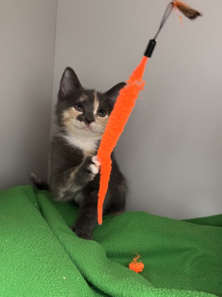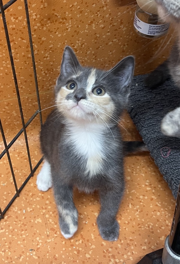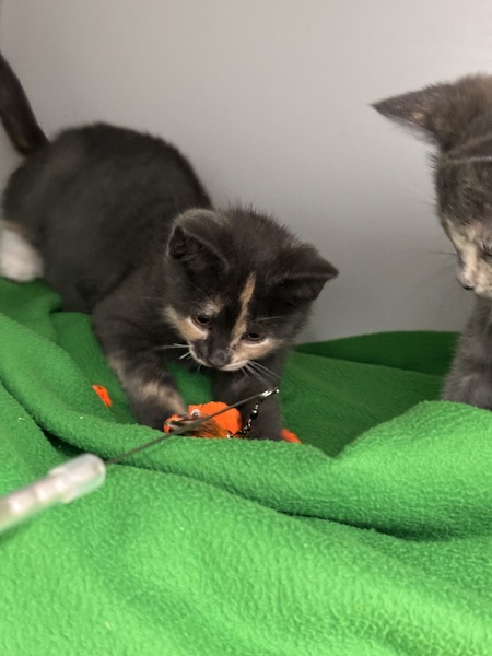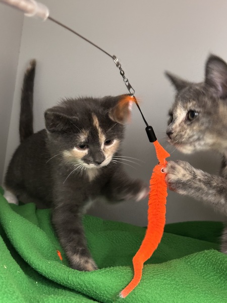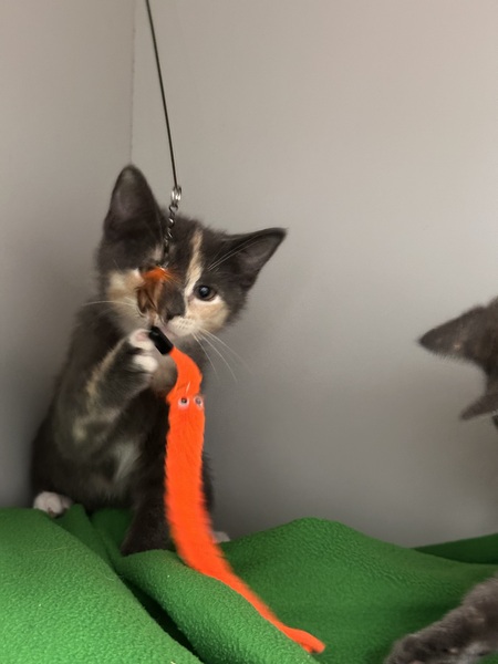 I'm SUPER cat-social and would love to go home with another playful kittie. I love following other kitties around to see what they're up to, and I've had fun playdates at the shelter. My favorite things are zooming after toys, splashing in my water bowl, and exploring with curious little paws.