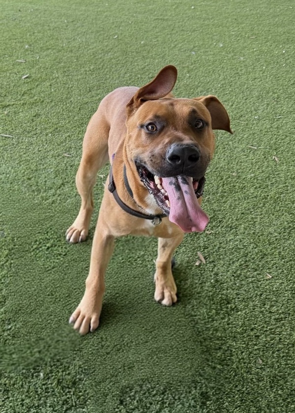 Tiny is a big, lovable guy who's looking for a home where he can be welcomed indoors and included as part of the family. He thrives on companionship and will happily lean his solid frame into your legs for some gentle affection - but he's just as content pottering around the yard, sniffing and exploring at his own pace.