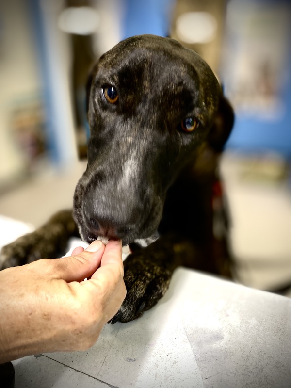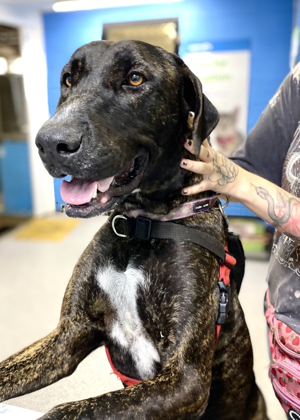 What we can tell you is this: Midge has an absolutely beautiful personality. She is placid & gentle, a delight to take for a walk, calm & friendly around people & other dogs. A true gentle giant. She is a big girl but don't let that put you off. She settles well but is certainly happier when she is around her favourite people. She will lean into you for affection & reassurance & has the most beautiful deep brown eyes which see into your soul. She has a lovely calm vibe which can really help keep you grounded in this crazy world.