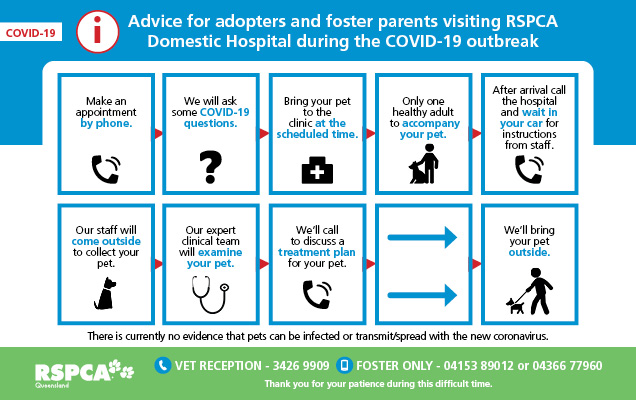 Download this handy guide for when visiting the RSPCA Domestic Hospital during COVID-19 or click the image below.