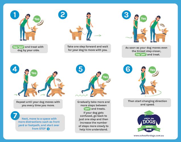 You can download our Loose Lead Walking Fact Sheet here for your step by step guide that will help your dog to walk on a loose lead in seven easy steps!