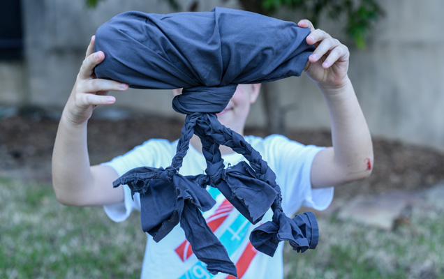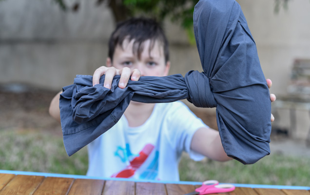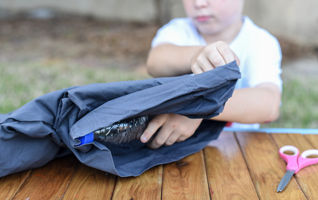 1. Securely wrap and tie the T-shirt around the water bottle, making sure the entire bottle is covered.