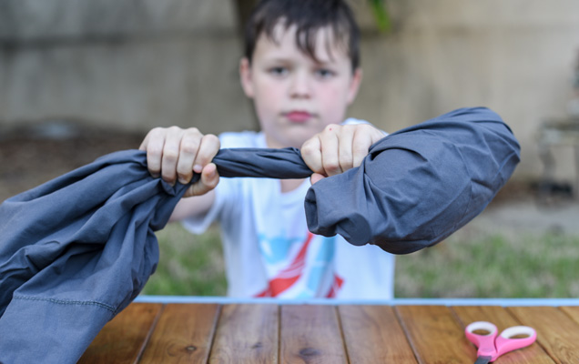 If your pooch loves funny crinkly noises, a T-shirt wrapped water bottle is the perfect toy.