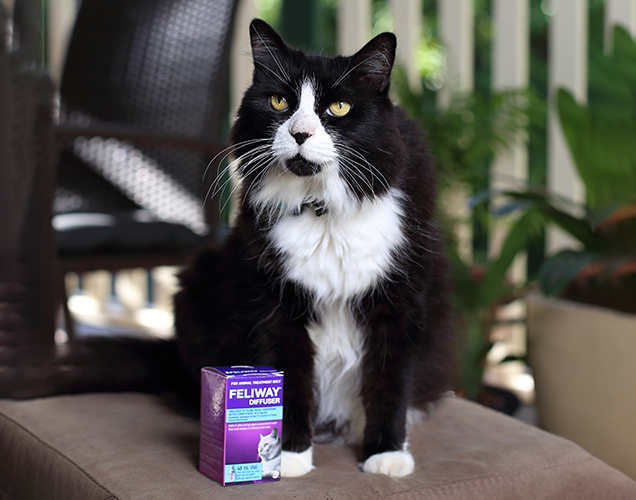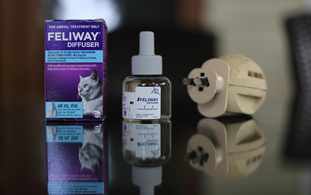 Pheromones are chemicals released naturally by dogs and cats that act as invisible communication. The pheromones are smelt by the nose and then relayed to a special device called the vomeronasal organ. From here these secret messages are deciphered by the portion of the brain that controls emotions such as fear and anxiety. By synthesizing these pheromones, we can provide stress relief cues to our pets in the form of sprays, diffusers or collars.