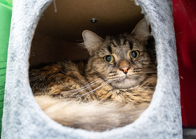 Cats love climbing and having access to high places. This is part of their natural behaviour and helps them cope with stress. Help your new cat adjust by providing lots of high resting places – tall cat stands, placing bedding or boxes on top of cupboards, and place at least one hiding place in every room.