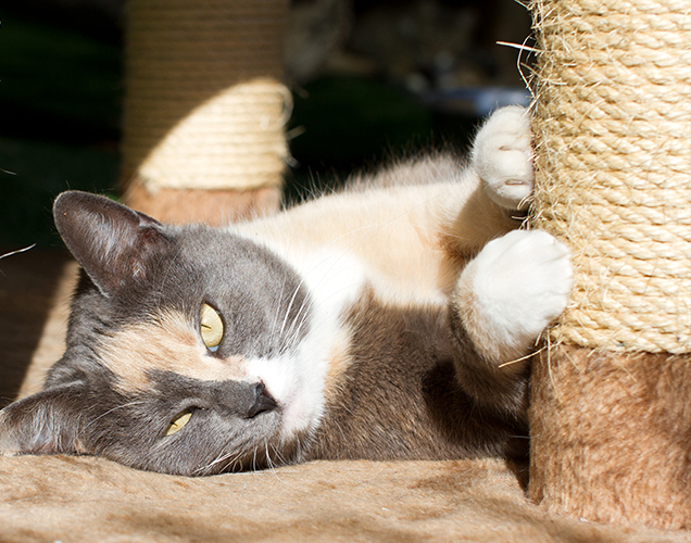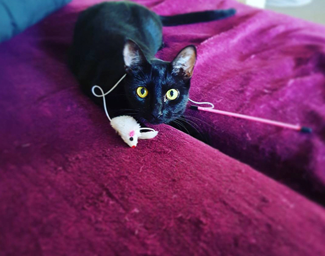 If your cat’s motto is ‘work easy, play hard’, they may need some extra loving just before your work day begins. Just a few minutes of play with toys like wands (make your cat a kitten wand or buy online from RSPCA World for Pets) will help tire them out and encourage them to rest. Try this outside of your work area so your cat knows play time doesn’t occur in your productive space.