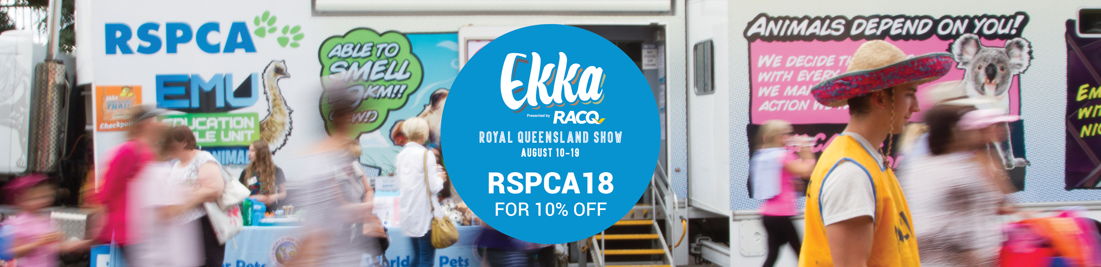 This year you can purchase your Ekka tickets here with code RSPCA18 to receive 10% off. Terms and conditions apply: 10% Off Discount applies to full priced general admission tickets.  Offer excludes 10 Day Pass, Ride Cards and Food and Drink Cards. Discount cannot be used in conjunction with any other offer. Valid until 11:59pm AEST Thursday 9 August, 2018.