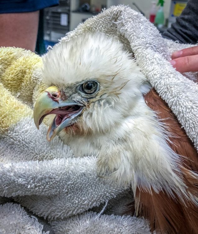 The Brahminy Kite was taken to Sugarlands Veterinary surgery who kept him in for observation overnight.