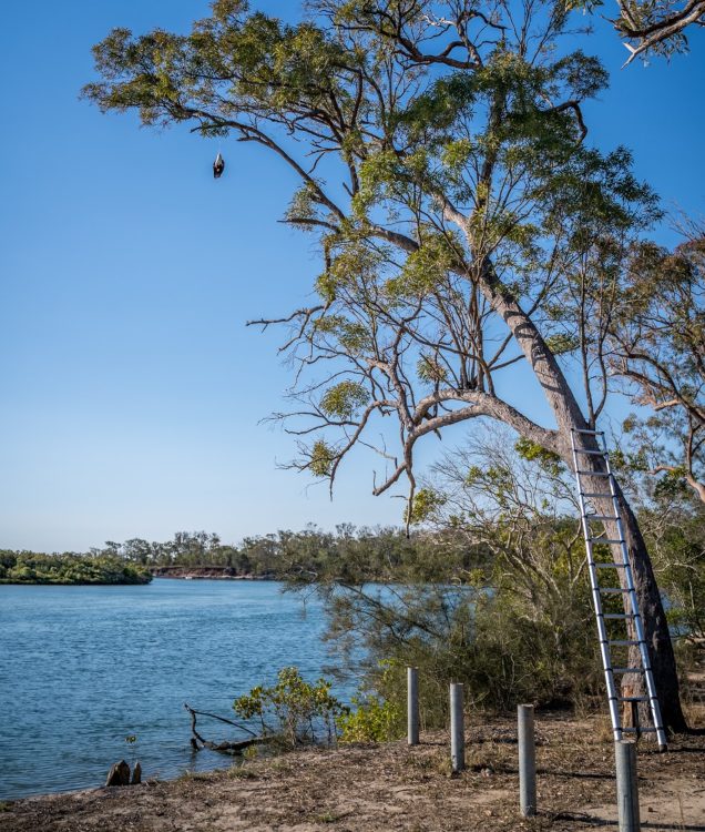 A local fisherman at Coonarr Beach near Bundaberg called Andrew when he saw the bird hanging from a branch with a hook through its beak. The fishing line attached to the hook had got caught on the branch and the bird was unable to free itself and certainly couldn’t fly.