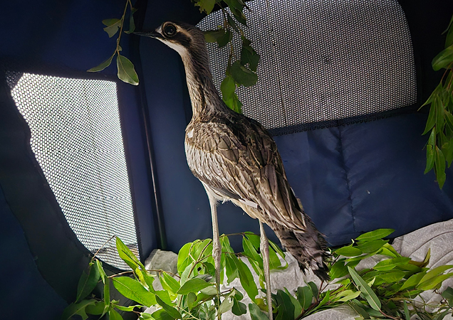 A member of the public recently spotted a bush stone curlew in Taringa hopping on one leg near a busy road. Thanks to their call, our Rescue Team captured the curlew and brought it into our Wildlife Hospital for treatment. After veterinary care and some rest, this little curlew is now back in the wild.
